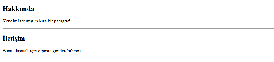 - İstersen bölüm başlıkları için <h2> kullan: “Hobilerim”, “Hedeflerim” gibi.